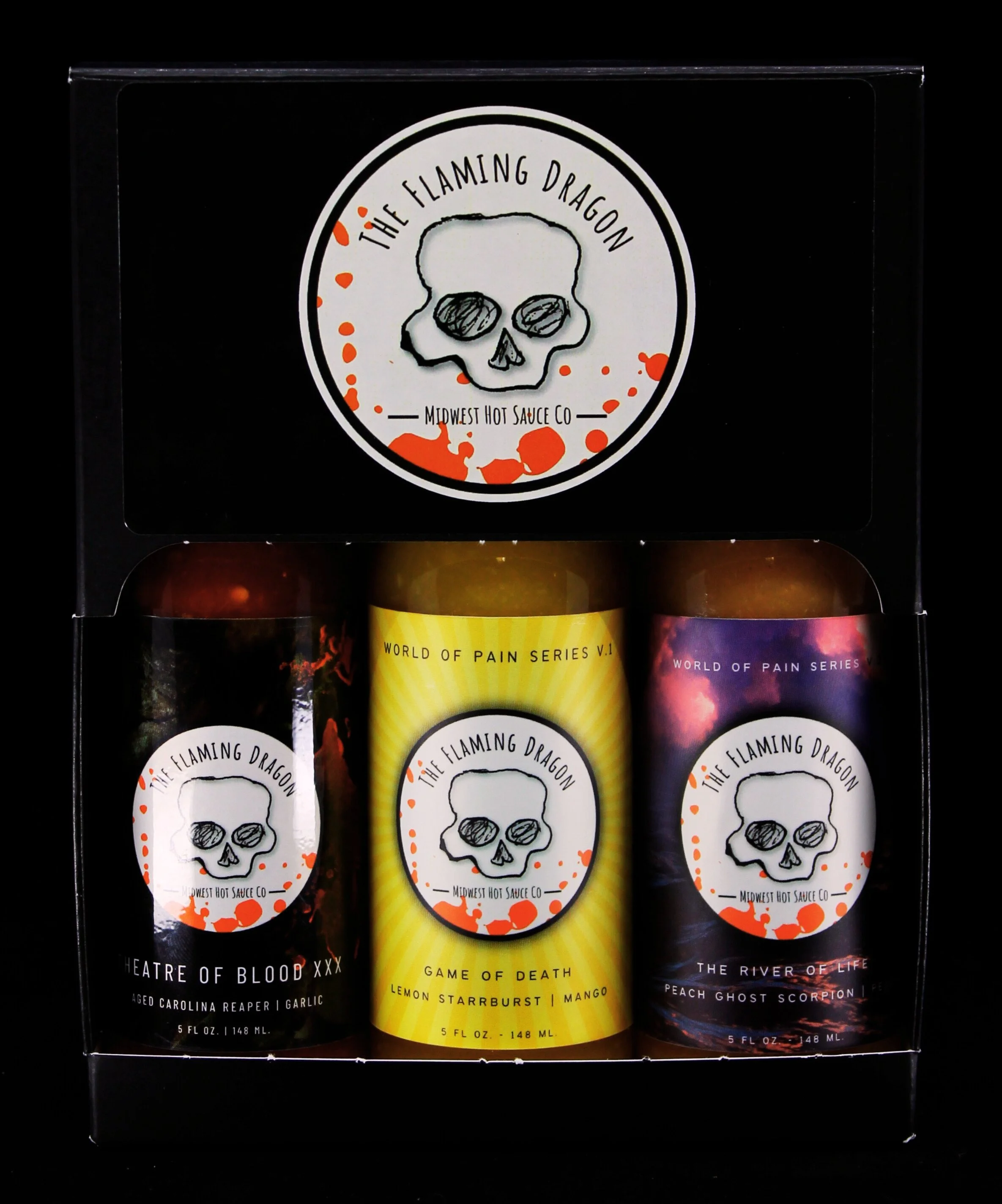 Categories: All Sampler Packs Year-Round Limited Release World of Pain Series Swag Gift Card Shop All | Sampler Packs | Year-Round | Limited Release | World of Pain Series | Swag | Gift Card | The Originals $22.00 Add To Cart Added! Nice Pack $22.00 Add To Cart Added! Naughty Pack $24.00 Add To Cart Added! Neon Demon - Dragon Fruit | Habanero $10.00 Add To Cart Added! Thunder in Paradise - Habanero | Garlic $8.00 Add To Cart Added! Dill Shot - Serrano | Dill $8.00 Add To Cart Added! Theatre of Blood - Aged Habanero | Garlic $8.00 Add To Cart Added! The Masque of the Red Death - Devil's Brain | Red Beet | Garlic $10.00 Add To Cart Added! Theatre of Blood XXX - Aged Carolina Reaper | Garlic $10.00 Add To Cart Added! Pizza Face - Serrano | Basil $8.00 Add To Cart Added! House of Wax - Wax | Habanero | Garlic $8.00 Add To Cart Added! Operation: CHAAK - Chaak | Garlic $8.00 Add To Cart Added! Operation: KOHLRABI - Aged Kohlrabi | Devil's Brain $8.00 Add To Cart Added! Game of Death - Lemon Starrburst | Mango $10.00 Add To Cart Added! The River of Life - Peach Ghost Scorpion $10.00 Add To Cart Added! Incident at Moondown - Ancho | Morita | Devil's Brain $8.00 Add To Cart Added! The Oblong Box - Black Scorpion Tongue | Blackberry | Black Currant $12.00 Add To Cart Added! The Pale Blue Eye - Blueberry | Ghost Pepper $10.00 Add To Cart Added! The Flaming Dragon Gift Card from $25.00 Select Value $25.00 $50.00 $75.00 $100.00 Purchase Added! Old Yeller - Spicy Mustard $12.00 Add To Cart Added! Holographic Decal $1.00 Add To Cart Added! Leather Bottle Holster Bundle (NATURAL) Sale Price: $20.00 Original Price: $35.00 Sale Add To Cart Added! Leather Bottle Holster Bundle (GREEN) Sale Price: $20.00 Original Price: $35.00 Sale Add To Cart Added! Leather Bottle Holster Bundle (RED) $20.00 Add To Cart Added! Je T'aime Maman - CARD ONLY Sale Price: $1.00 Original Price: $8.00 Sale Add To Cart Added! Foam trucker hat $20.00 Black Navy Blue / White / Blue Light Pink / White / Light Pink Black / White / Black Red / White / Royal Add To Cart Added! Unisex Hoodie $35.00 View Options Women's Relaxed T-Shirt $25.00 View Options Skull Design Unisex T-Shirt - Perfect for Halloween and Everyday Wear $20.00 View Options